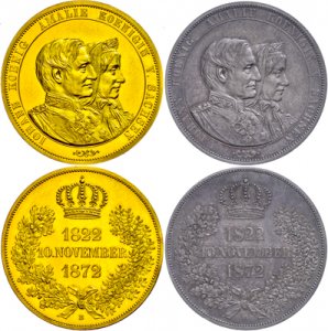 Saxony gold off-metal strike of the double thaler 1872