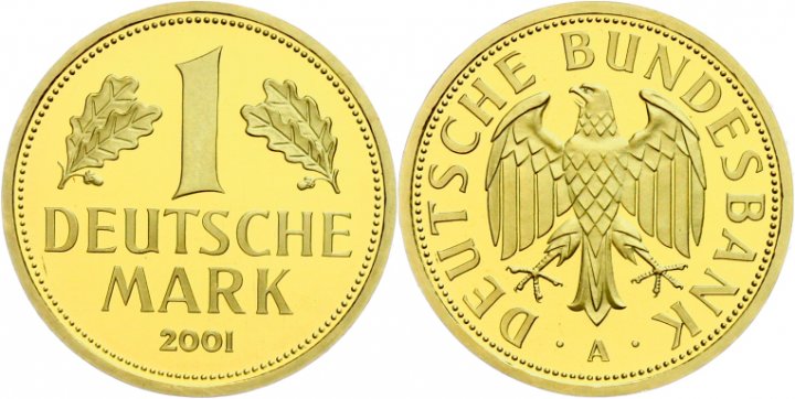 A total number of 1 million »Goldene Abschiedsmark«, as they are colloquially called, was minted. The coins have the mint marks A, D, F, G or J (200,000 coins per mint mark). The high gold content of 12g makes this coin interesting for German gold coin enthusiasts.